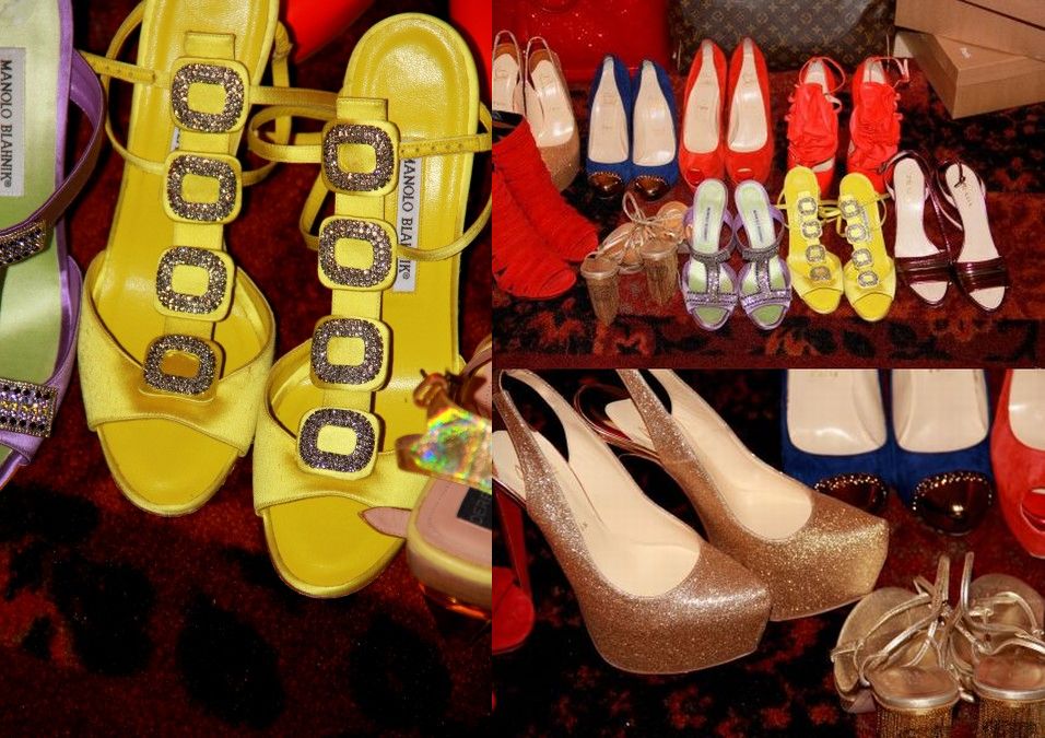 Dress, Belt & Earrings: Vintage; Shoes: Manolo Blahniks; Sunnies: Balenciaga; Crystal Encrusted Clutch